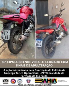 Formosa do Rio Preto: Motocicleta clonada é apreendida durante policiamento ostensivo